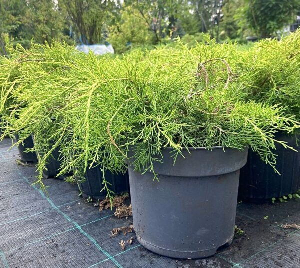 Можжевельник средний Gold Coast- компактный раскидистый хвойный кустарник с изящными ветвями. Высота растения до 1м и до 2м в диаметре. Кончики горизонтально растущих побегов свисают. Хвоя мягкая, чешуйчатая, у основания ветвей колючая, золотисто-зеленая, особенно яркая на молодых приростах. Используется в групповых и одиночных посадках, для создания ландшафтных композиций.